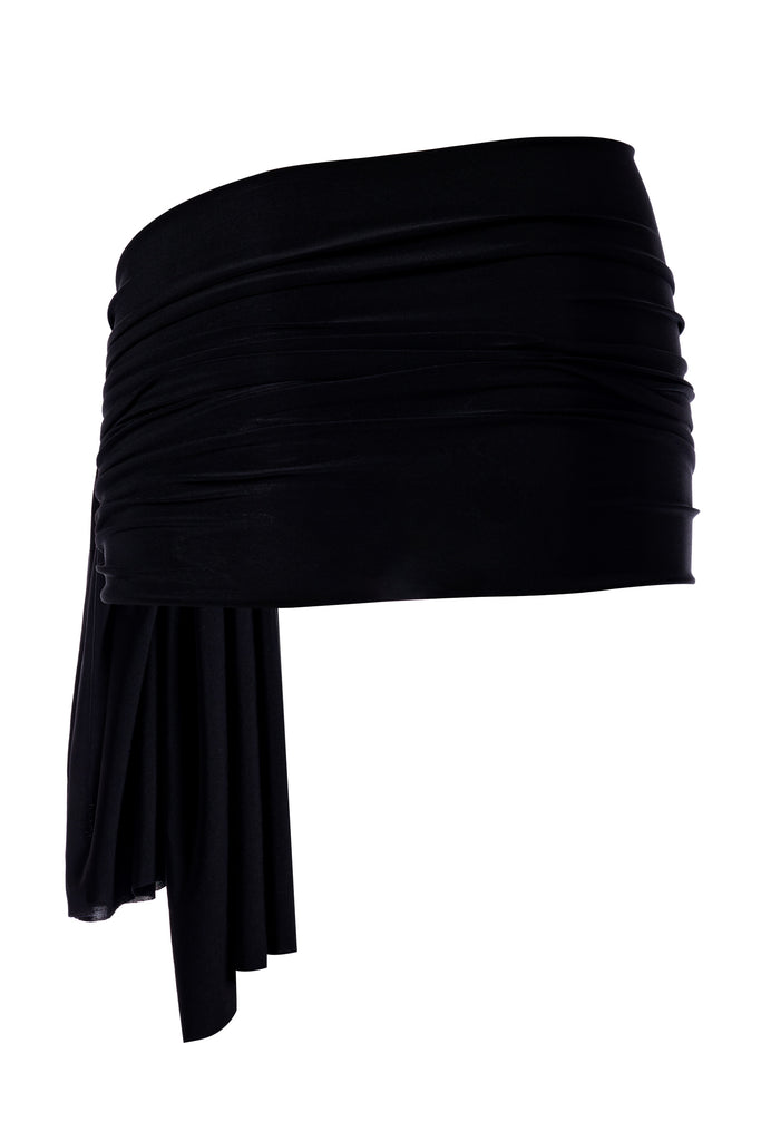 Elevate your style with our glamorous jersey asymmetric mini skirt, perfect as a chic cover-up for your bikini or a stunning standalone piece. This eye-catching skirt features a crystal buckle that secures ruffled fabrics, adding a touch of sparkle and sophistication. The asymmetric design and flowing ruffles create a flattering and dynamic silhouette, making it a must-have addition to your wardrobe.