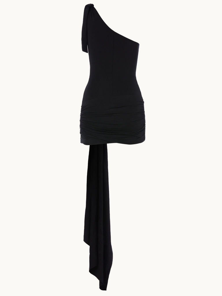 Discover the allure of our 'Misty' mini dress, where bold design meets luxurious comfort. This one-shoulder dress stands out with its elegant detailing and flexible fit, making it a stunning choice for any occasion.