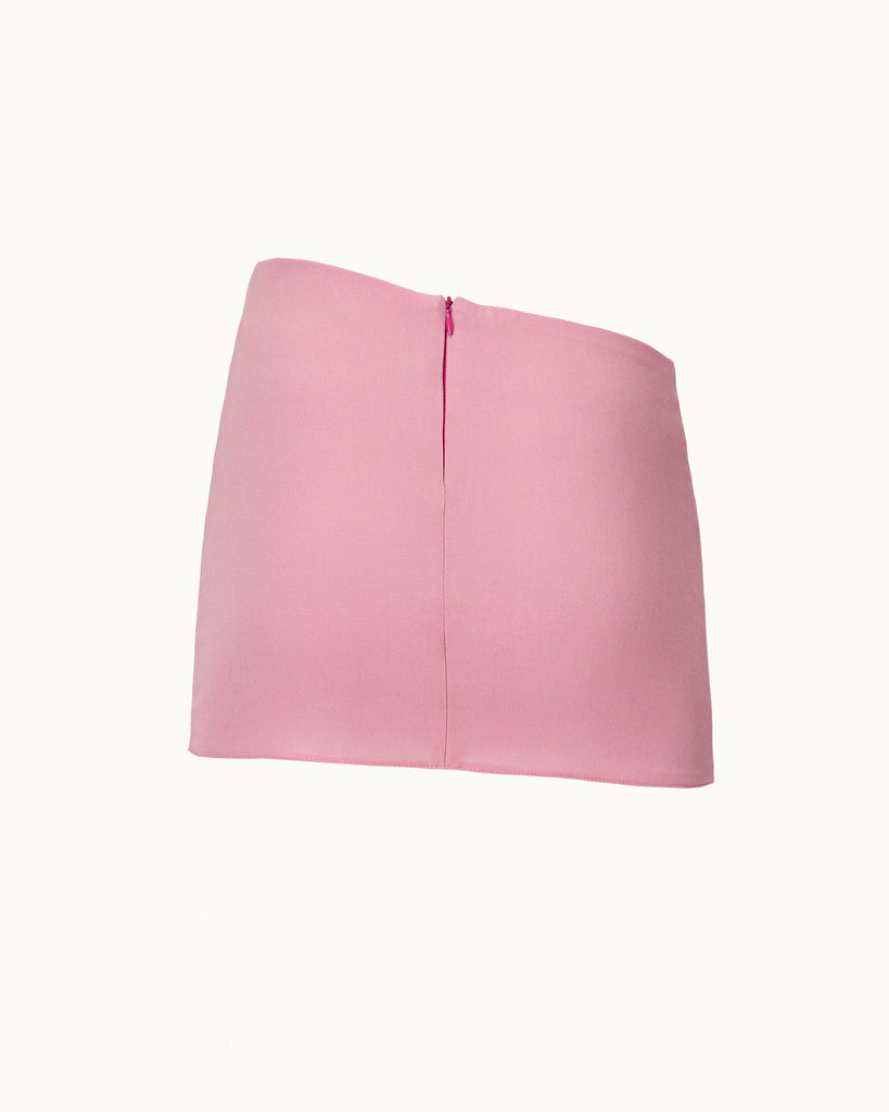 Elevate your style with our chic pink mini skirt, expertly designed with an asymmetric waist to enhance and elongate your silhouette. This skirt is a flattering choice for all body types, ensuring you look and feel your best in any setting.