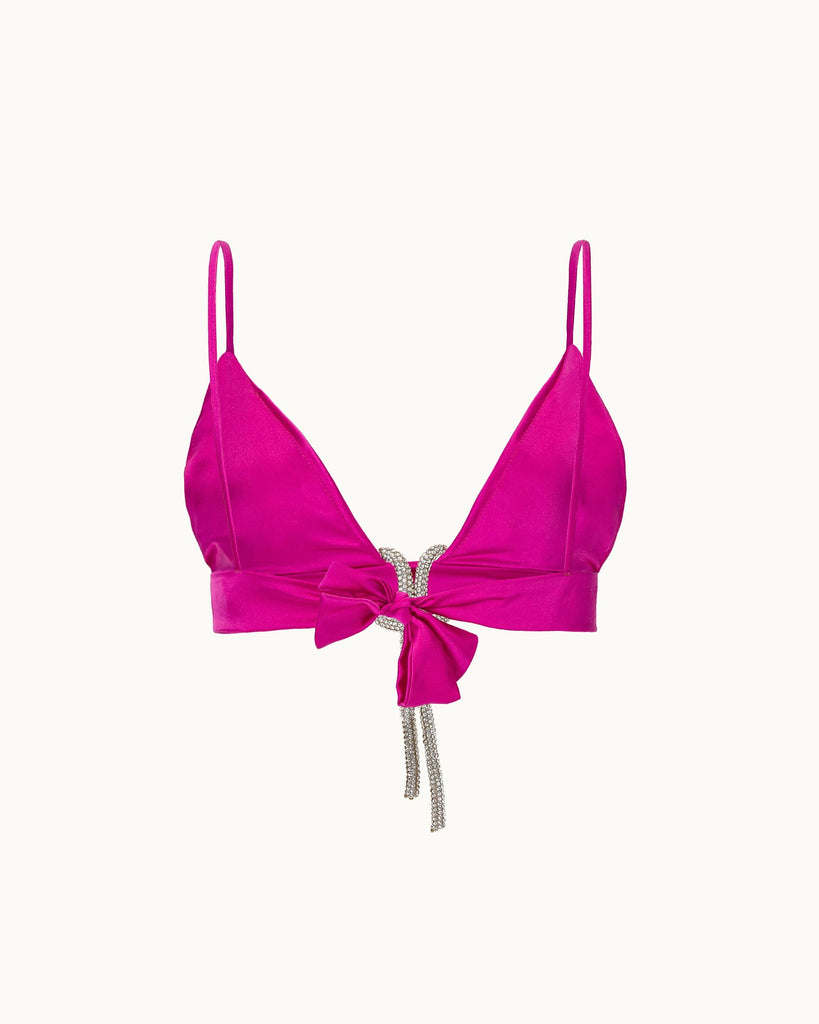 This berry-colored silk bra with its stunning detachable crystal detail is the perfect choice for those looking to add a touch of sophistication and luxury to their wardrobe. Ideal for special events or just to feel exceptional every day.